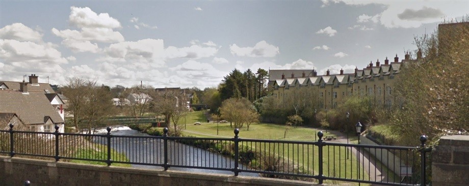 A footbridge connects both riverbanks and an outdoor gym is located on the site.